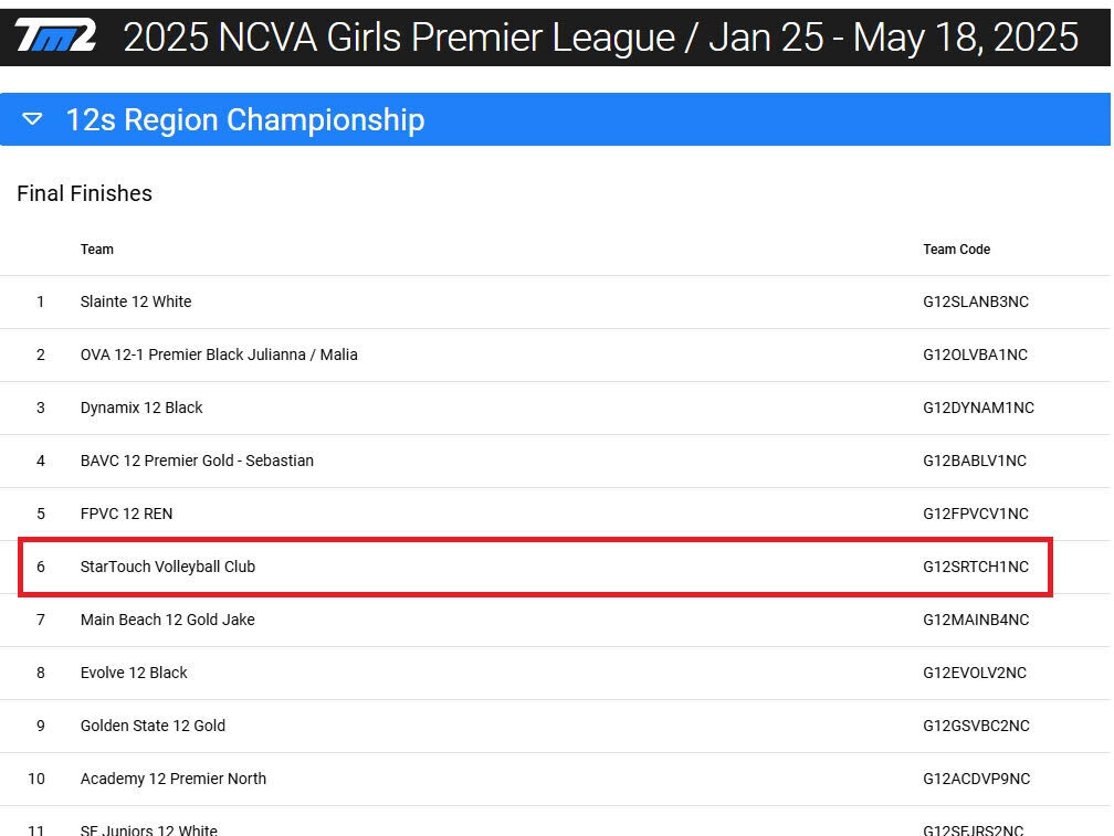 *ranked #6 among 48 teams in 2025 NCVA premier league